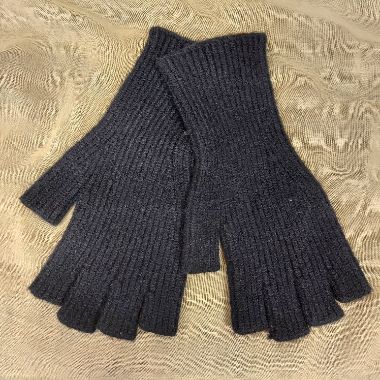 Beautiful fingerless gloves in black featuring a ribbed pattern.