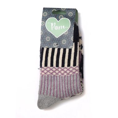 High quality Navy, Lilac and Grey multi-knit socks.