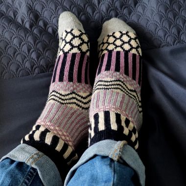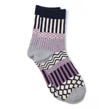 Navy and lilac multi-knit socks