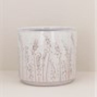 Stoneware Pot Cover 14cm - White Rustic Lavender small