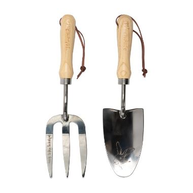 Beautifully presented in an illustrated box, this handy set of tools includes a fork and a trowel and will help any gardener to plant, dig and weed in style. With 'Make today beautiful' and an illustration of a hare etched into the stainless steel this set would make an extra special gift. Made from wood and stainless steel. Fork: 310mm. Trowel: 320mm. Box: 380mm x 190mm x 80mm. Box and wooden handles sustainably sourced from responsibly managed forests. Laser etched branding and leather hanging loops are attached to the handle.
