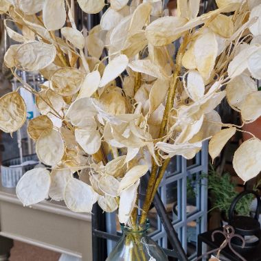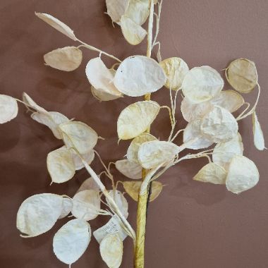 Beautiful honesty spray. A stunning piece that will add a decorative touch to your home. Dimensions: 78cm x 33cm x 6cm Made from 70% Polyester, 20% Acrylic, 10% Iron