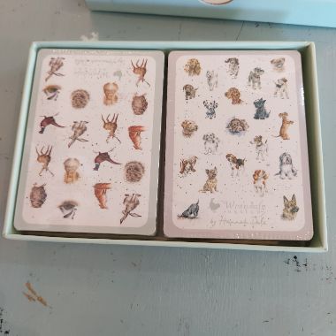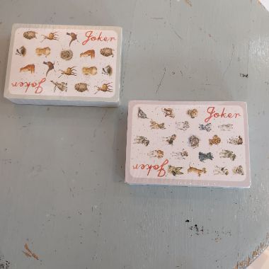 This wonderful set of playing card comes complete with two decks featuring our most popular country animal, dog and Rabbit designs. The cards will provide endless opportunities for fun and games. All packaged in a beautiful gift box with gold foiled lettering, they can make a lovely gift, or treat for yourself. 95mm x 130mm x 20mm.