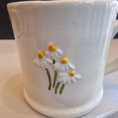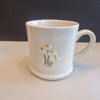 A gorgeous white daisies stoneware mini mug. The ideal mug for your favourite hot drink. Capacity: 200ml Dimensions: 7cm x 10cm x 7cm Made from Stoneware