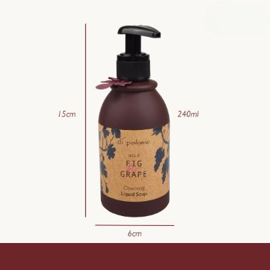 Introducing our luxurious Di Palomo Wild Fig & Grape Liquid Soap 240ml, a lavish addition to any handwashing routine. Elevate your clients daily cleansing rituals with our meticulously crafted soap. Our Liquid Soap offers a unique blend of gentle cleansing and moisturising agents to leave skin soft and subtle. Di Palomo Wild Fig & Grape provides a unique blend of delicious juicy figs and sun-ripened grapes, delight your clients with a fruity and fragrant sweet aroma that captures the true essence of an Italian Summer