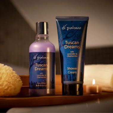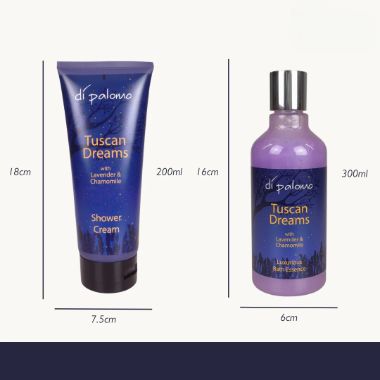 Introducing our luxurious Di Palomo Tuscan Dreams Bath & Body Collection. Complete with our Luxurious Bath Essence & Shower Cream, our Bath & Body Collection is perfect for businesses looking to offer their clients the ultimate relaxing bathing experience to gift themselves or a loved one. Our rich, foaming shower cream adds the perfect touch of luxury to any bathing experience. Simply drizzle our Bath Oil & Bubble Bath blend and enjoy deliciously decadent bubbles. Di Palomo Tuscan Dreams is a modern take on the classic pairing of Lavender & Chamomile. With Top Notes of sweet orange and bergamot leading to Middle Notes of lavender, rosemary & chamomile, resting on Base Notes of leather, amber, & musk.