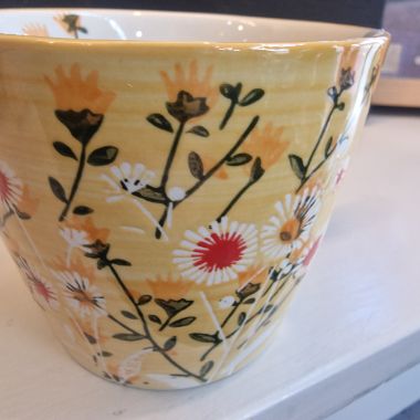 A gorgeous mug with a yellow wild daisy design. Level up your drinking experience with our stylish and practical mugs. Dimensions: 12.5cm x 9.5cm x 8.3cm Made from Stoneware