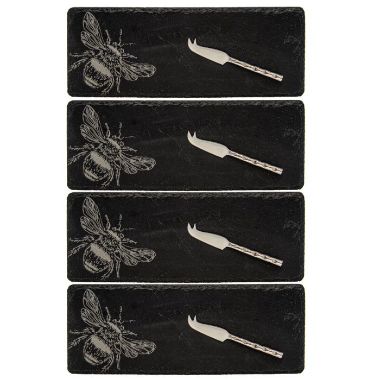 Bee Mini Slate Cheese Board & Knife Sets (Set of 4)