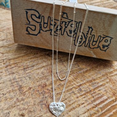 A beautifully elegant silver plated double strand heart necklace.