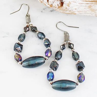 Beautiful grey Beaded teardrop earrings.