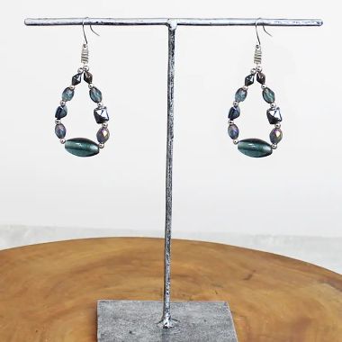 Beaded teardrop earrings - silver with grey beads