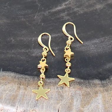 DOUBLE STAR DROP CHARM EARRINGS [GOLD-PLATE]