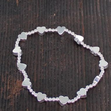 A simple yet pretty silver heart elasticated bracelet.