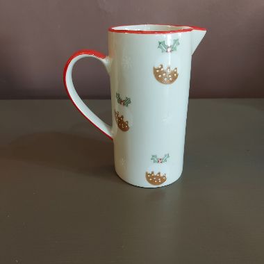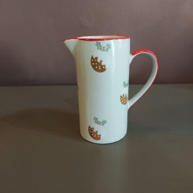 A beautiful stoneware tall jug featuring the 'Christmas pudding' design.