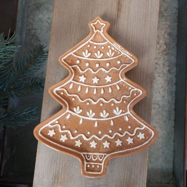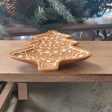 A beautiful gingerbread tree ceramic plate. Perfect for serving your mince pies, cookies or other treats. Other gingerbread‐inspired tableware available. Dimensions: 2cm x 20cm x 20cm Made from Ceramic