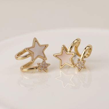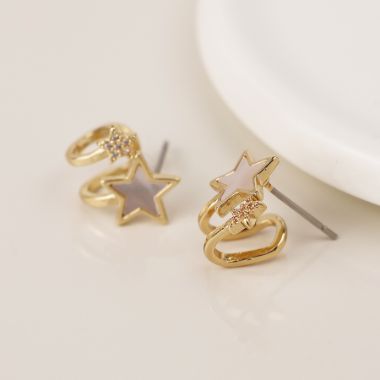 Golden pearl and crystal star earrings
