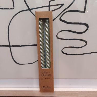 A luxury box of 2 metallic green twist taper candles Set the perfect festive scene with the help of these candles Burn Time: 5.5 Hours Dimensions: 25cm x 9cm x 2cm Made from Paraffin Wax