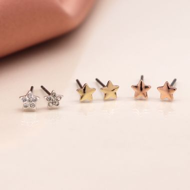 Stud earrings - stars in gold, rose gold and silver
