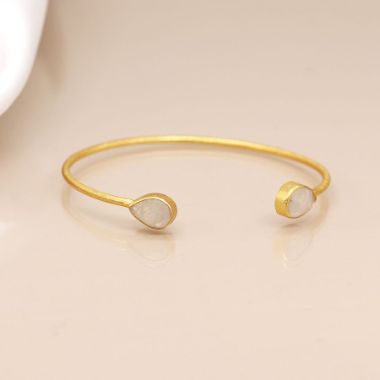A simple and stylish gold plated bangle with moonstone inset into each end.