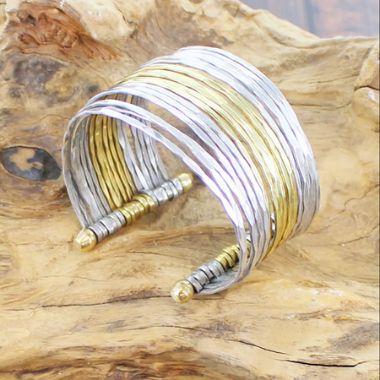 Multi-strand silver and gold cuff