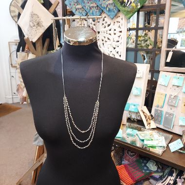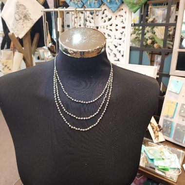 Three strand silver bead necklace - grey cord