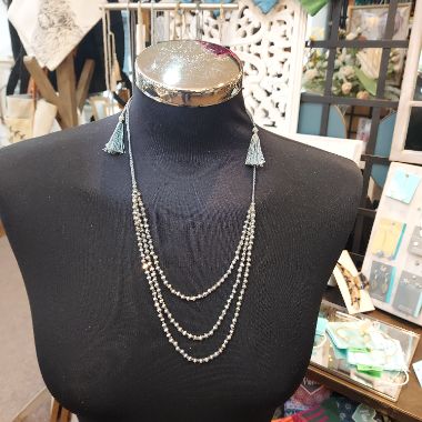Long glass tassel necklace - grey