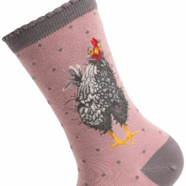 A treat for your feet, this wonderful pair of socks features a delightful hen stitched onto super soft material.